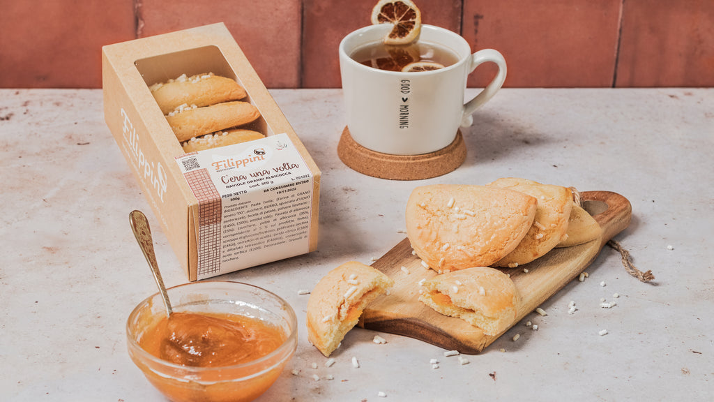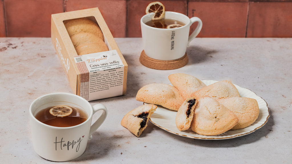 Pasta frolla a forma di mezza luna e ripiena di marmellata di albicocca o mostarda.