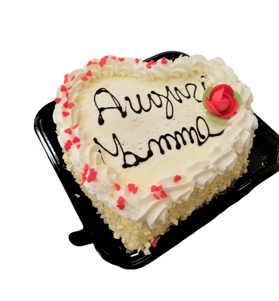 Pan di spagna farcito e ricoperto con crema chantilly. Decorazioni Festa della Mamma.